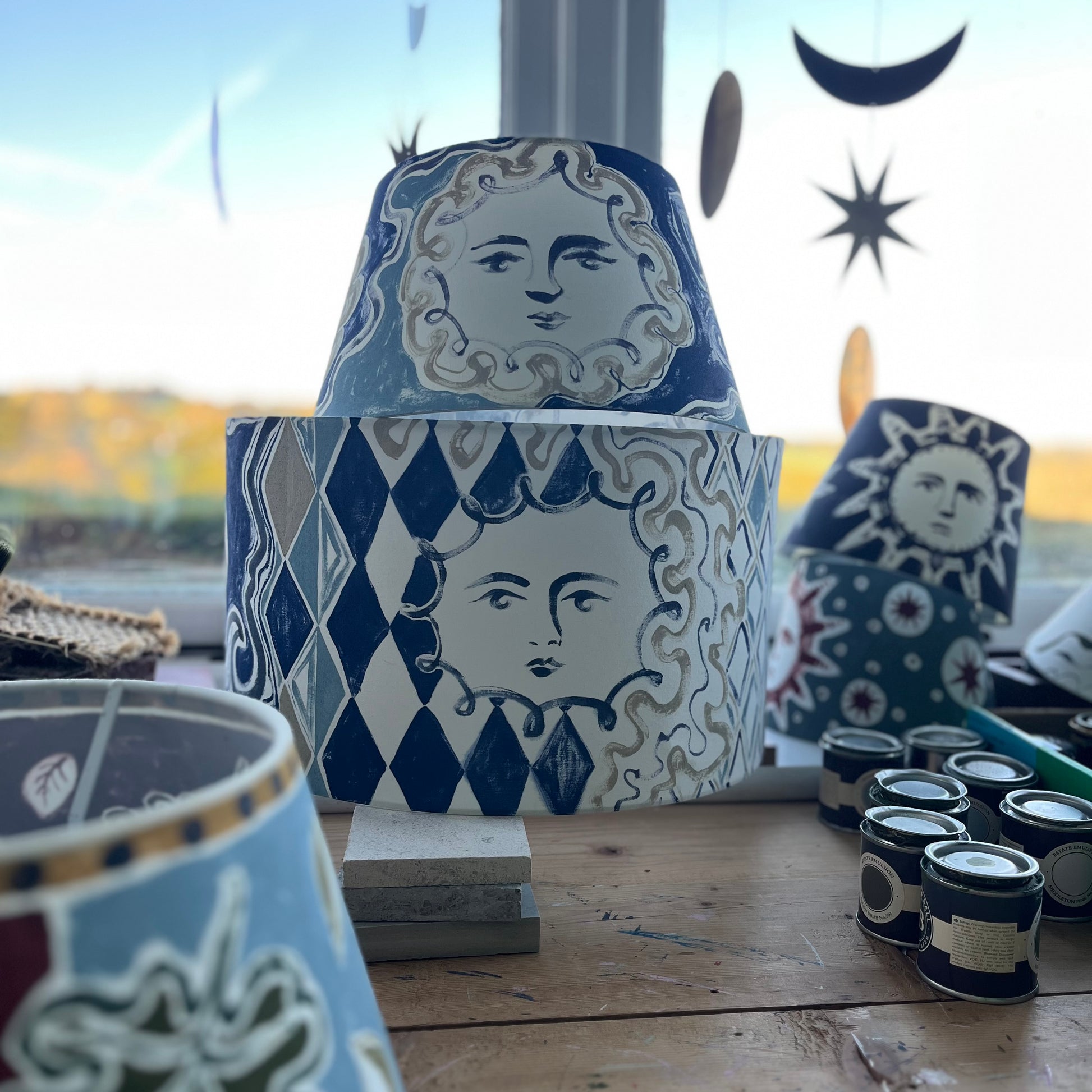 'Nemean Sun' is a made-to-order decorated lampshade. Expect delivery within 7 days from placing your order. Your lampshade will be considerately packaged with recycled and recyclable materials, and dispatched from my studio in East Sussex.